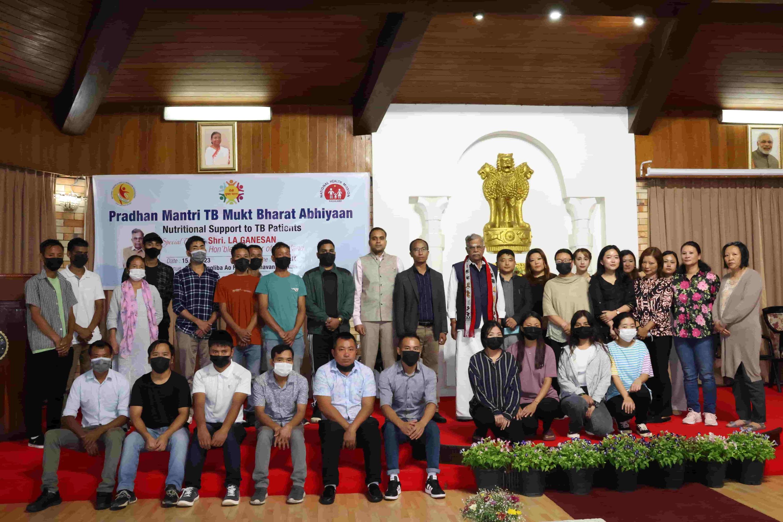 Nagaland Governor La Ganesan with Secretary to Governor,District TB officers,Kohima and others during the program for the Nutritional Supplements Basket distribution at Raj Bhavan, Kohima on 15 July 2023